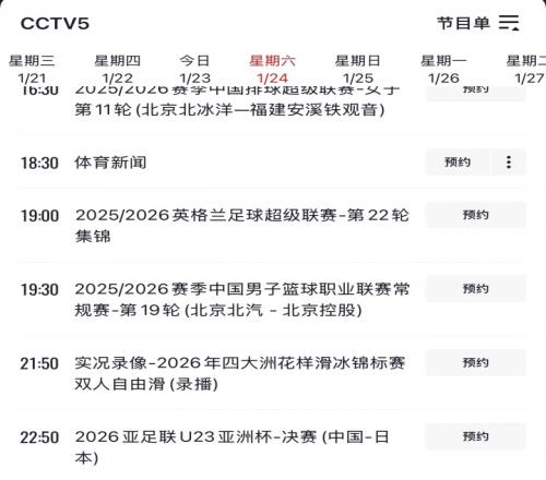 體育播報1月23日宣 央視更新節目單,確認明晚將直播U23亞洲杯決賽:中國vs日本!