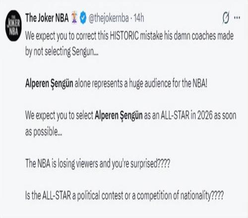 賽前美媒為申京未能入選全明星陣容抱不平,他直言教練們沒有投票將申京選入全明星替補是一個嚴重的錯誤,希望蕭華能讓申京遞補揚尼斯的席位入選全明星。