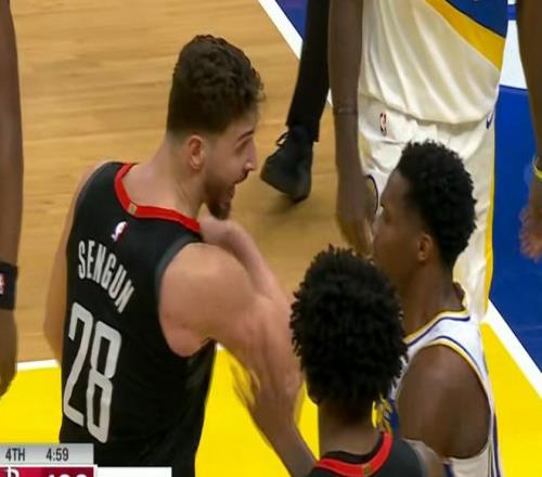 于是在比賽當中,申經多次和對手發生過沖突,打得好得同時也是火力全開,甚至還和對方球員發生過不止一次的沖突。申京和對手發生過兩次沖突,倒地搶球的時候有過一次,更主要的是單挑馬瑟林的時候,轉身上籃被對面推了一下腰。他當場就急眼了,返身就要揍馬瑟林,兩邊互相推搡,申京甚至非常罕見的伸出右手一肘子錘在了對面的胸口。